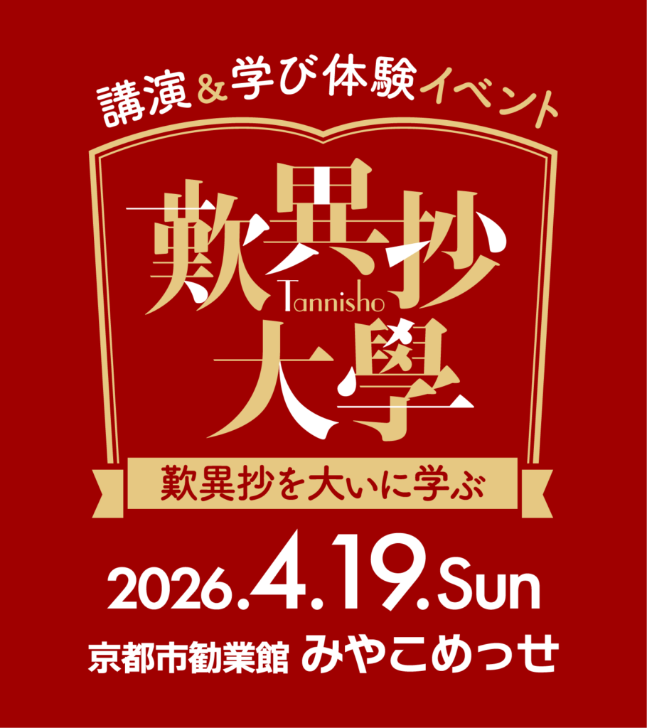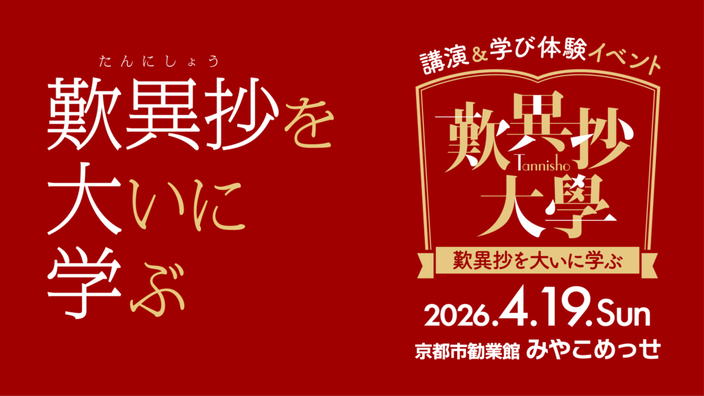 そのような『歎異抄』の魅力と奥深さを、講演やアニメ映画、展示などで学ぶイベント「歎異抄を大いに学ぶ」、 略して「歎異抄大学」を開催します。