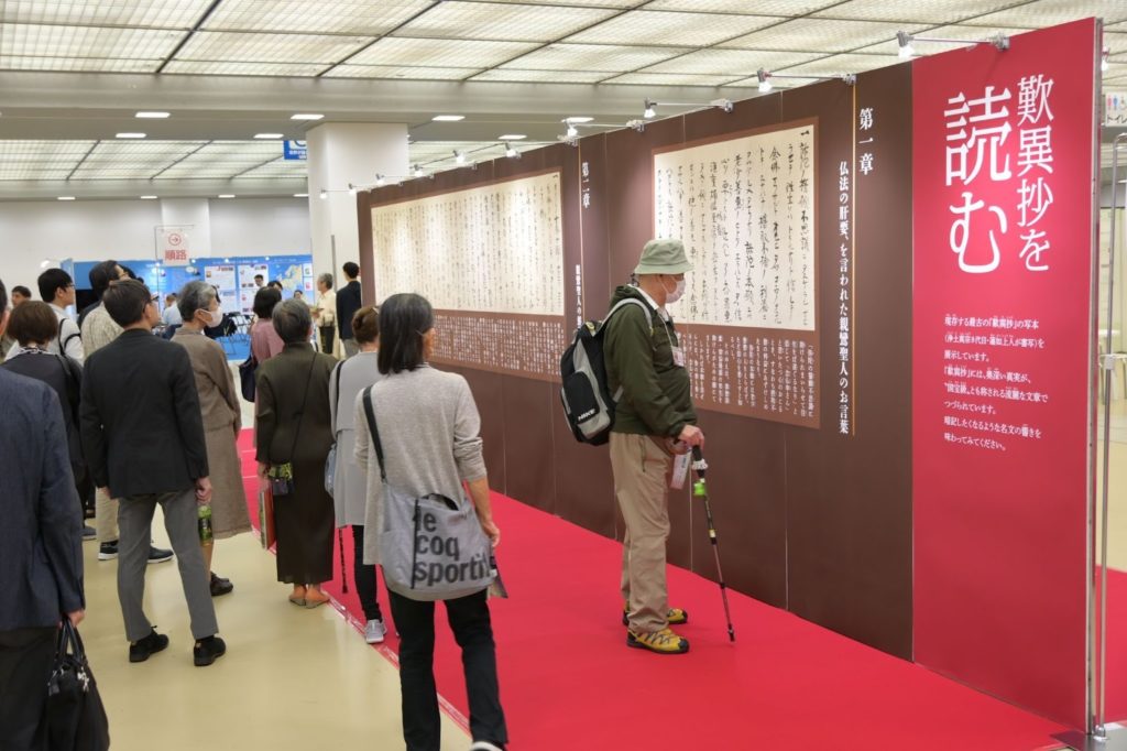 「歎異抄って難しそう…」と感じている方でも安心の初心者向け解説パネルや、心に響く朗読が聞けるコーナーも設置。また、蓮如上人の貴重な写本(複製)が大きく展示され、多くの方が足を止めてその文字に見入っていました。