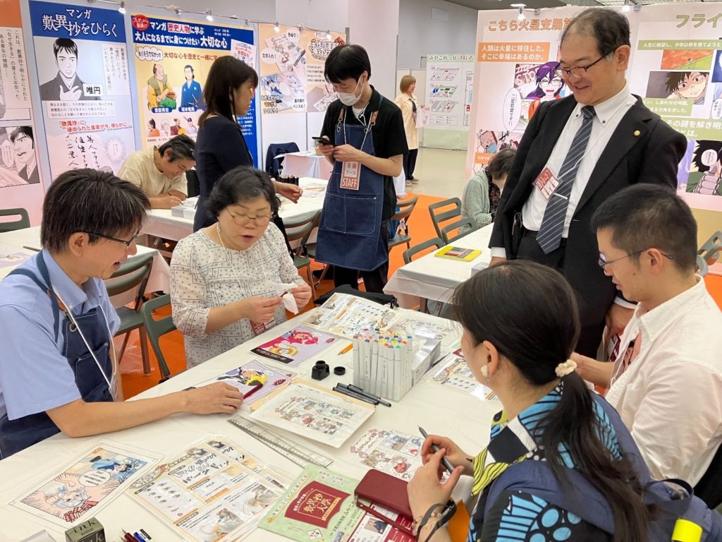 鳥獣戯画で知られるマンガ発祥の地・京都にちなみ、自分だけのオリジナルマンガを作れる体験ブースが登場。プロが使う「Gペン」を手に、用意されたイラストに色を塗ったり、思い思いのセリフを書き込んだり。子どもから大人まで夢中になって、世界に一つだけの作品を創り上げていました。